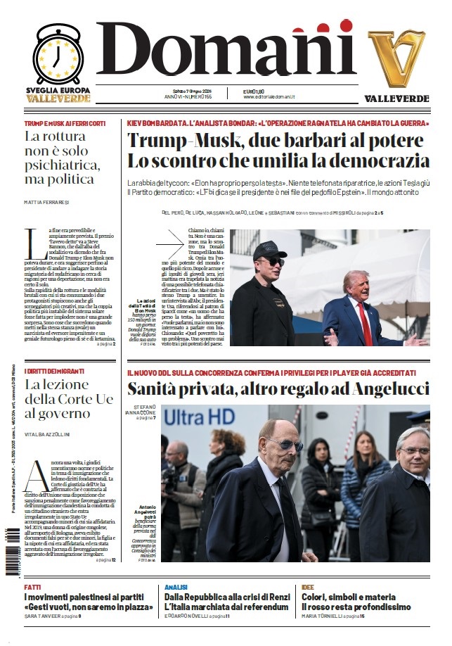 All’interno Sebastiani e Del Pero ancora con “L’editoriale” di Ferraresi passante nelle due pagine aprono i Fatti, poi Vincenzo Leone accanto a De Luca da Kiev, Holgado e “Il commento” di Antonio Missiroli, Merlo e Matilda Ferraris, Iannaccone, le colonne “Italia e Mondo” accanto a Peloso, Sara Tanveer e Giulio Cavalli, per chiudere con Preziosi e Ikonomu.